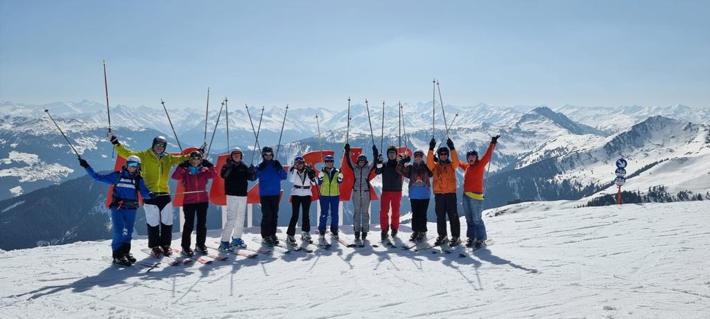 Die Gruppe der Skifahrer mit Guide Franzi –
