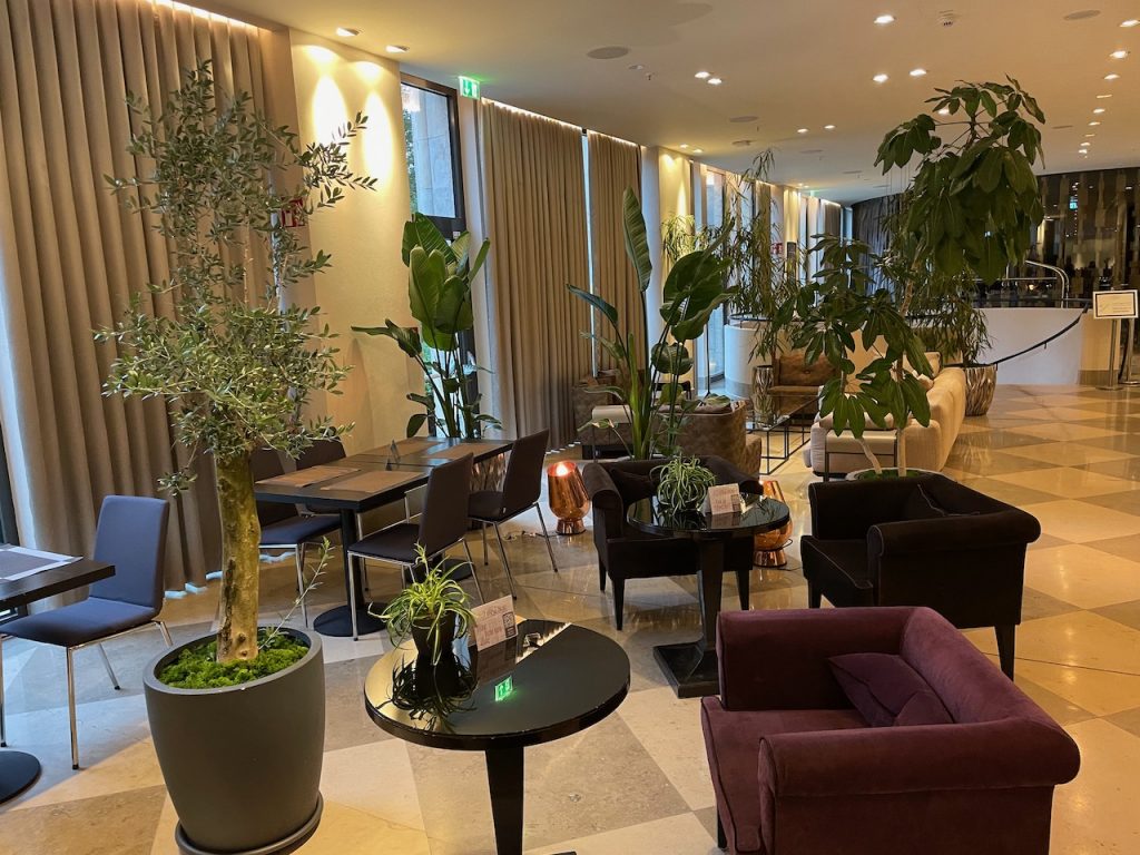 Das Interior des Crown Plaza Hotels ist elegant mit warme Farben und edlen Stoffen. Es zeichnet sich vor allem durch seine Veranstaltungsräume aus. Über acht multifunktionale Tagungsräume mit modernster audiovisueller Technik bieten Platz für kleine oder große Meetings, Veranstaltungen für bis zu 250 Gäste.