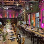 4. Party: Während die Gäste sich abends im Außenbereich kulinarisch verwöhnten (Foodtrucks und Buffetstationen im lässigen Urban Look), wurde die Halle zur Party Area umgebaut. Neontape im ganzen Saal, DJ Pult, Tanzfläche und zwischendrin die bunt angestrahlten Kunstwerke aus Papphockern als Party- und Fotokulisse.