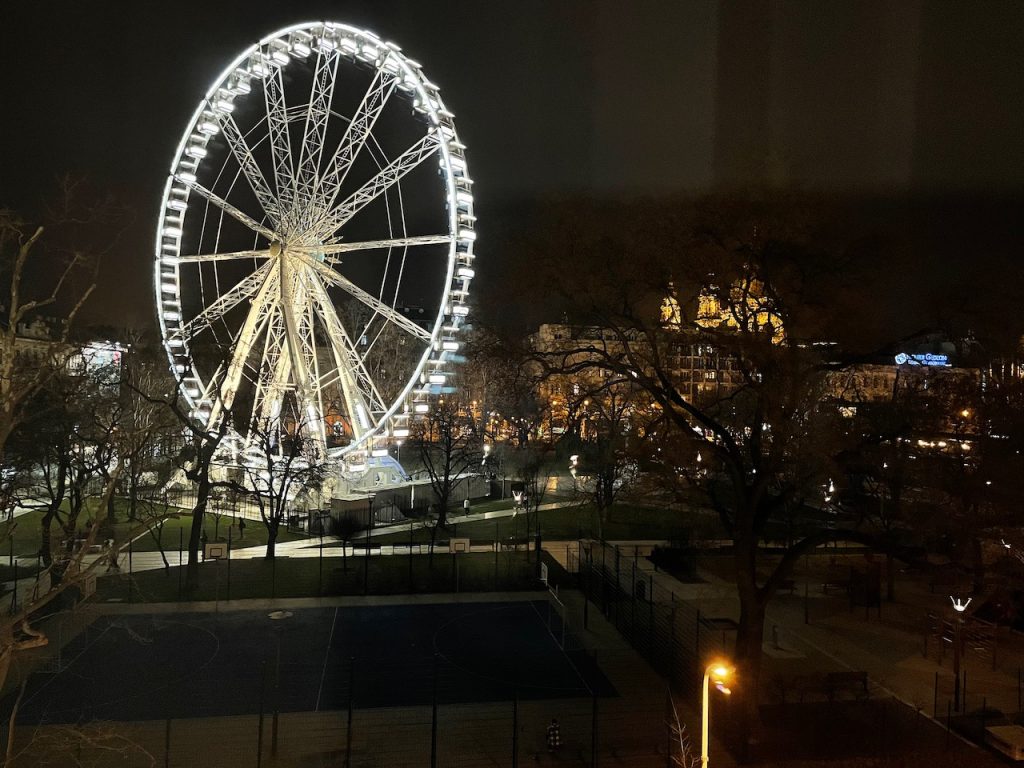 Der Blick, von den kürzlich renovierten Grand Deluxe Zimmern, auf die Stadt und das Riesenrad ist am Abend faszinierend und begeisternd.