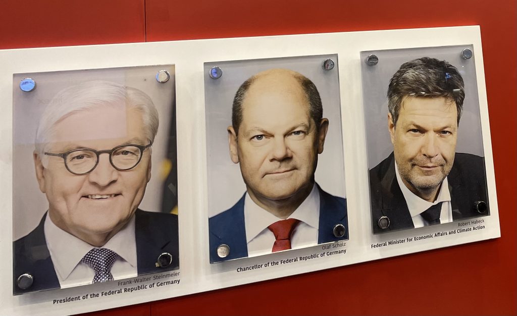 3 lieblose an die Wand gepinnte Fotos von Deutschlands „wichtigsten“ (!) Politikern, war mehr Abschreckung den Aufmunterung zum Besuch des Standes. Mußte man sich deshalb desinfizieren (SANITIZE HERE). Wobei man sich fragen konnte, wo das Foto des 3. Regierungsmitgliedes war. (es heißt doch Ampel und nicht rot, rot, grün)