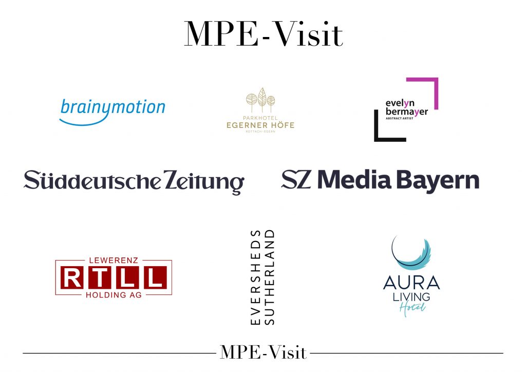 Kooperationspartner der MPE-Veranstaltung waren die Süddeutschen Zeitung GmbH und SZ Media Bayern, so auch Eversheds Sutherland (Germany), RTLL Lewerenz Holding AG, das Parkhotel Egerner Höfe, die brainymotion AG, das Aura Living Hotel in Rimini/Italien und die Künstlerin Evelyn Bermayer.