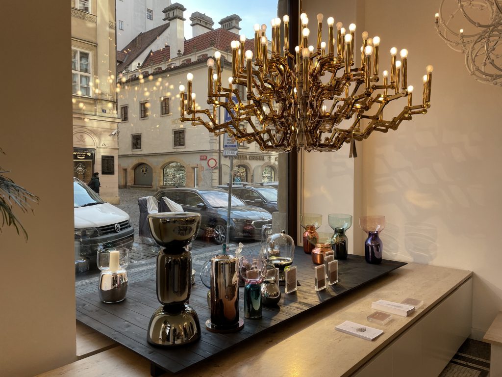 Auf 540 qm Ladenfläche betreten Besucher eine Welt aus Kristall und Glas. Der Store in einem geschichtsträchtigen Gebäude ist ein Ort, an dem traditionelle tschechische Glaskunst und zeitgemäßes Design aufeinandertreffen. Die Auswahl an Schmuck mit handgefertigten Edelsteinen, Geschirr, Vasen, Lampen u.v.m. ist riesig.
