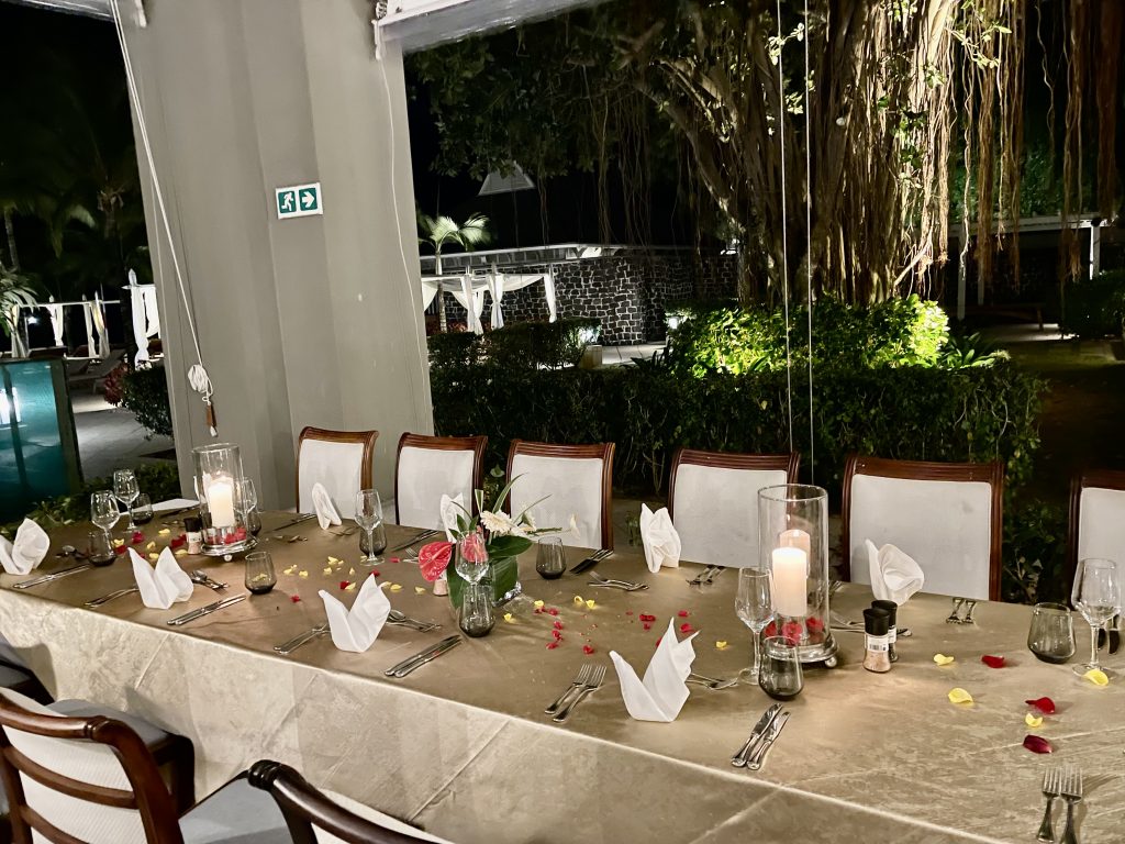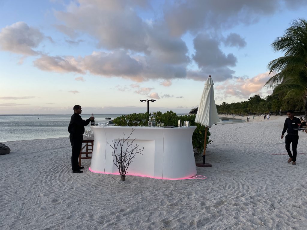 Auch die schönste Reise geht einmal zu Ende.  Zum letzten Sonnenuntergang mit Champagnerempfang und Farewell Dinner lud das JW Marriott Mauritius Resort die Gruppe.